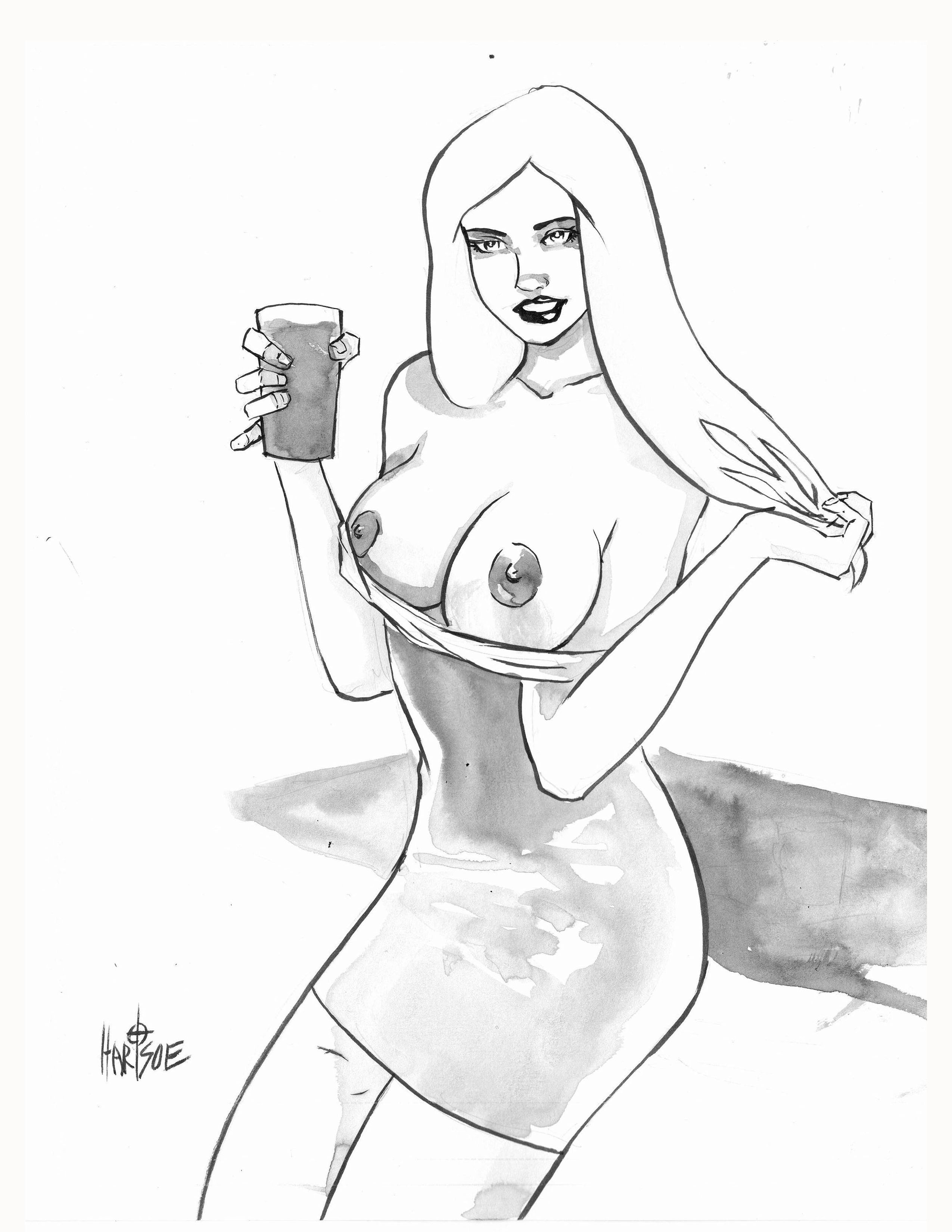 1 of a kind Original ink wash 8.5" by 11" blue line strathmore. published in Badgirl Artworks