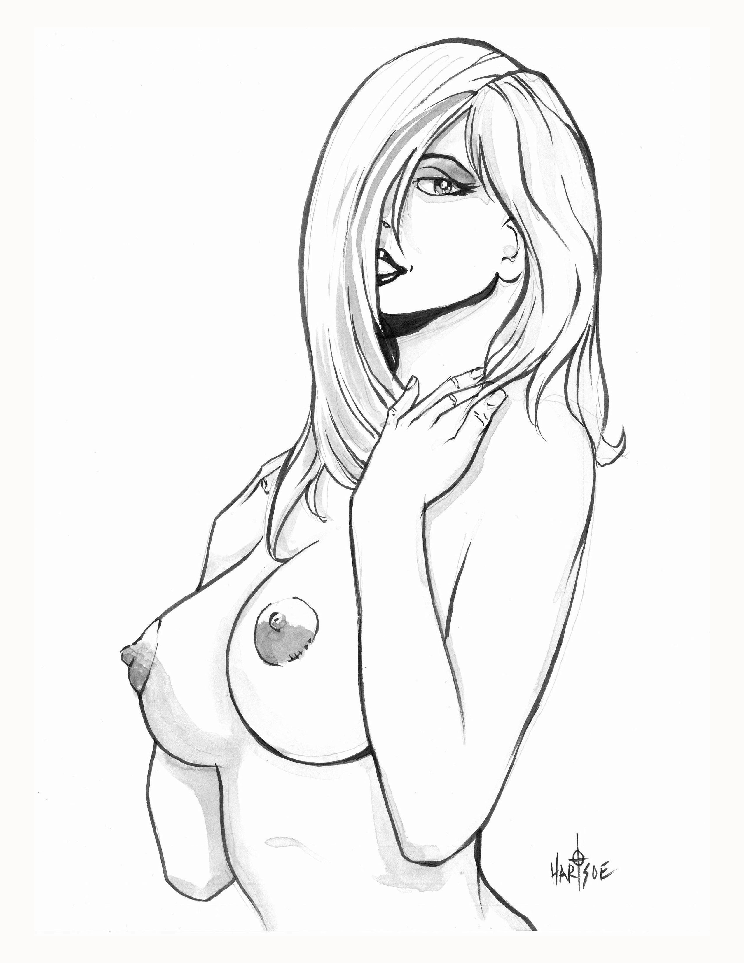1 of a kind Original ink wash 8.5" by 11" blue line strathmore. published in Badgirl Artworks