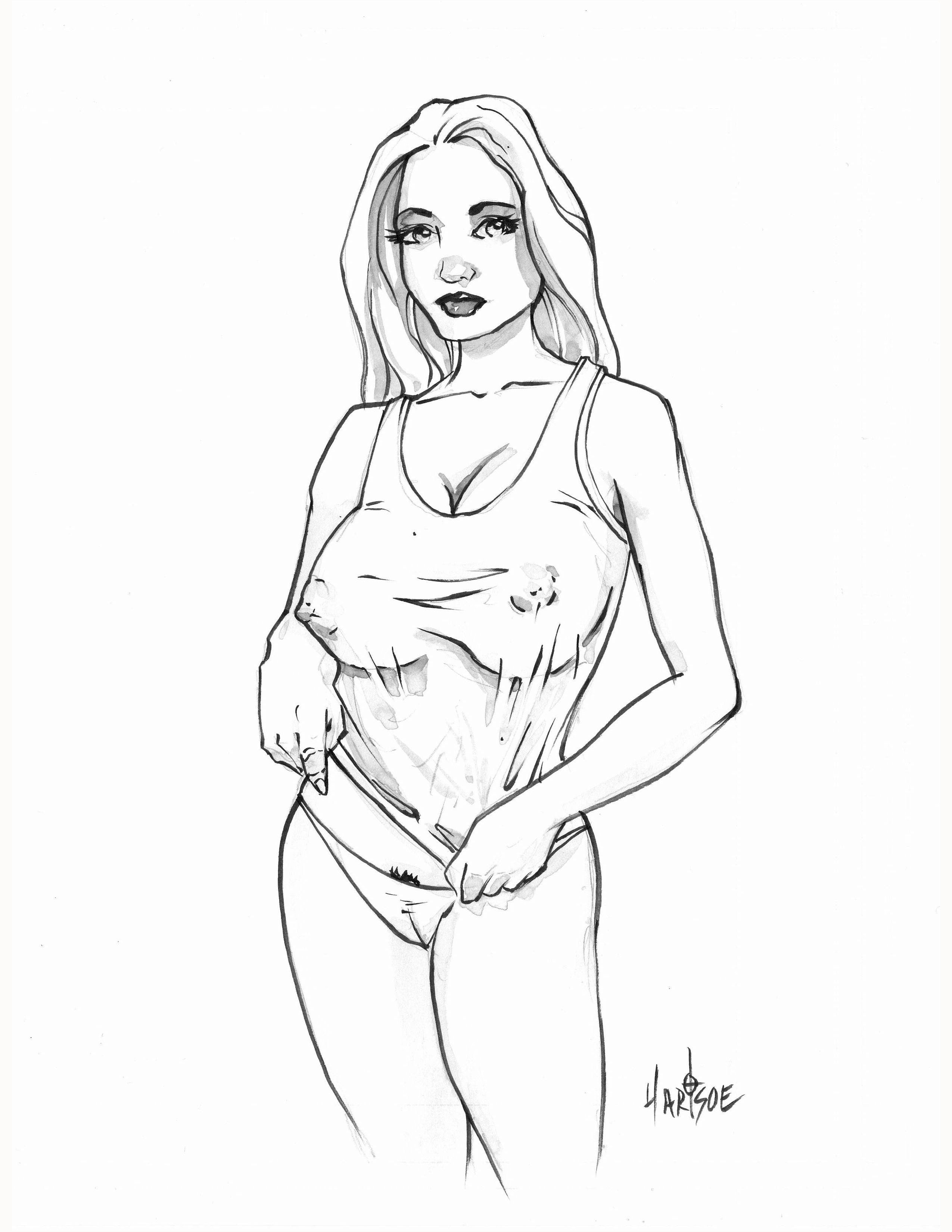 1 of a kind Original ink wash 8.5" by 11" blue line strathmore. published in Badgirl Artworks