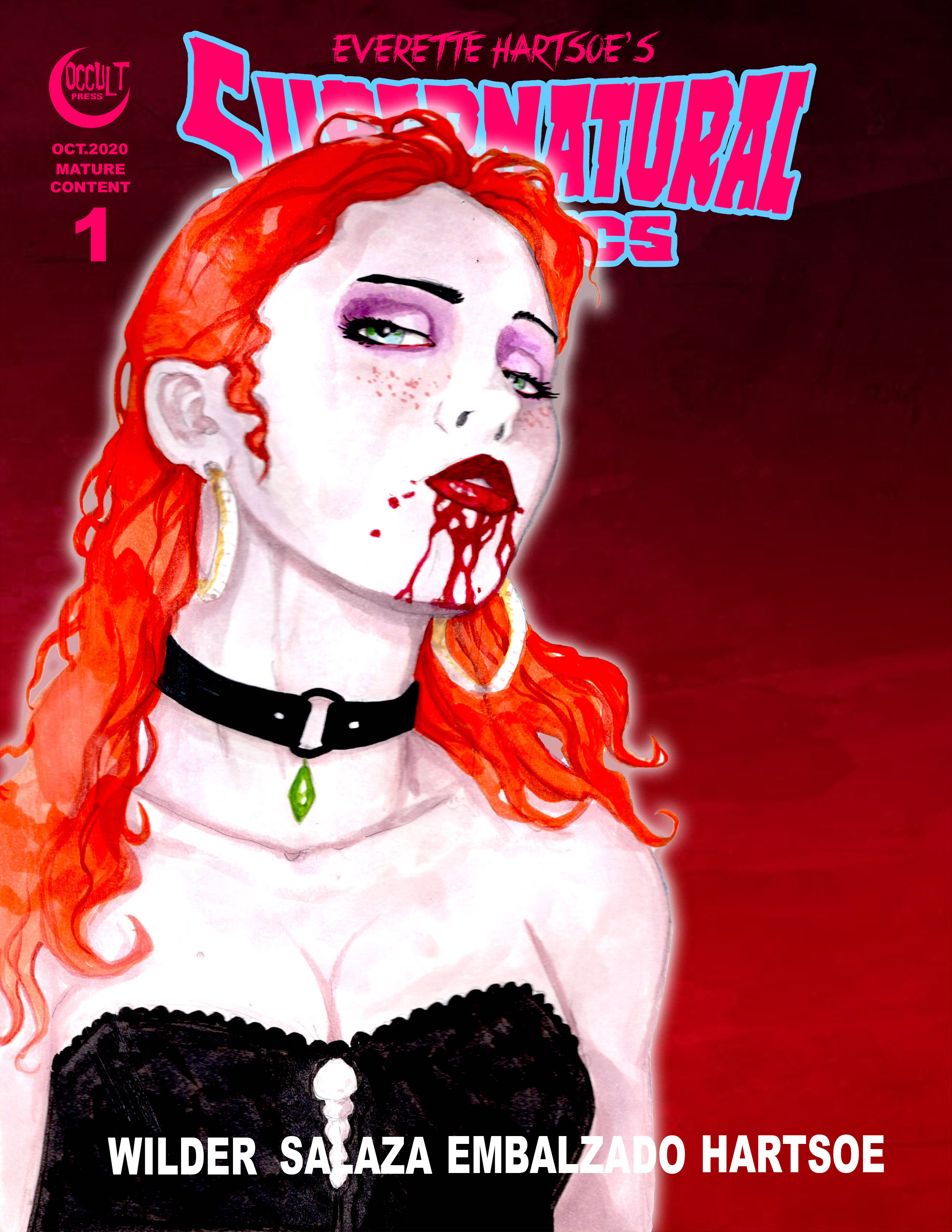 SUPERNATURAL COMICS #1 IS A THROWBACK TO THE LARGE FORMAT OF BLACK AND WHITE COMICS FROM THE 60's and 70's, such as Vampirella, FEAR and Marvel's Tomb of Dracula. SUPERNATURAL COMICS #1 WILL BE A JUMBO 48 PAGE ADULT'S ONLY EXTRAVAGANZA FEATURING 4 STORIES TO SHOCK AND SEDUCE YOU INTO THE DARK REALM OF EVERETTE HARTSOE'S TWISTED VAULT OF CHARACTERS.